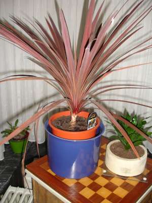 de cordyline australis staat binnen in huis en heeft ondertussen een stammetje aangemaakt van zo'n 6 cm.