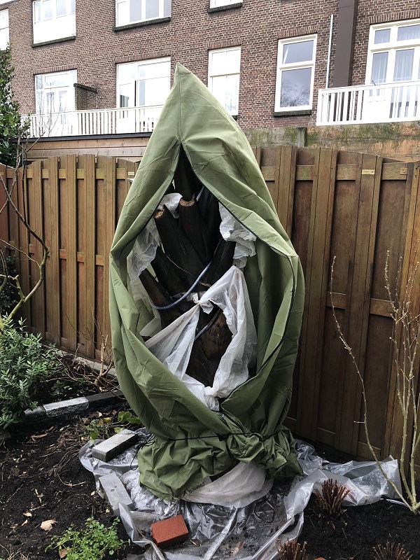 Moet ik er nu wel bij zeggen dat ik toen geen bijverwarming heb toegepast. Het was meer een test en had er geen zin in om er elektriciteit aan te verspillen. Ik heb toen kwalitatief winterdoek gebruikt en deze heel erg veel omwikkeld rond de planten. Doek is te koop bij Herbert (Gardenpalms)