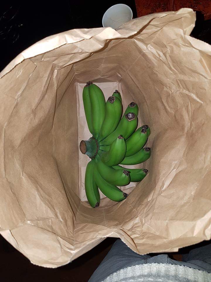Deze doe ik in een papieren zak, maar zonder rijpe vrucht dit keer.