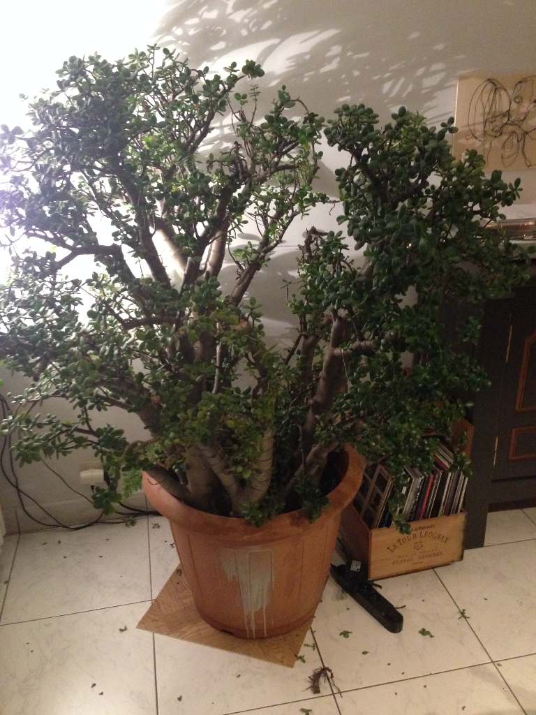 De takken van onze Crassula Ovata verschrompelen van boven naar onderen toe!