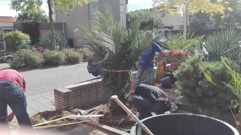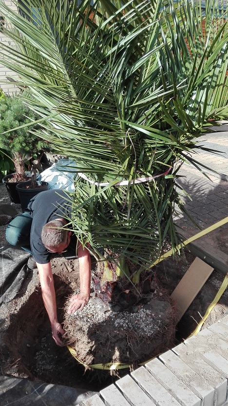 Hier een foto van mijn Jubaea die vorig jaar van adres mee wilde veranderen.