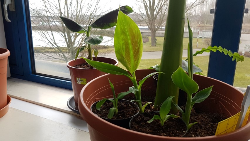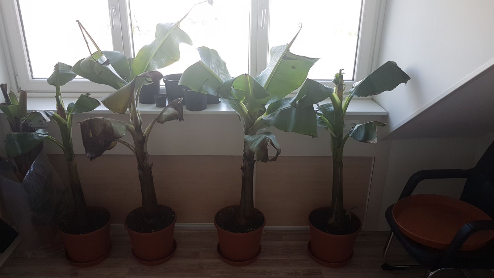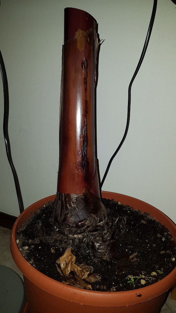 Ik heb de bladeren op 4 November ingekort en binnen plaatsbaar gemaakt. 80 en 85 cm stam met blad jongens van 180cm
