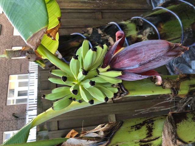 Een van de vele banaan in onze tuin.