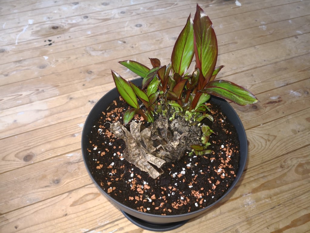 Ik heb de 4 delen zoals jullie zien op de foto eerst in een speciekuip gepot, later heb ik ze over gepot naar ieder een eigen pot.