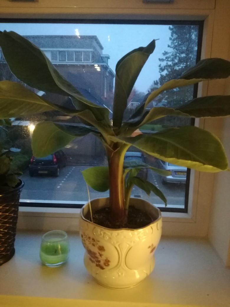 Begin januari zag ik bij de lokale supermarkt een aantal Dwarf Cavendish staan en heb er twee meegenomen en in de wintermaanden in een andere ruimte rustig laten staan en elke week een klein scheutje water.