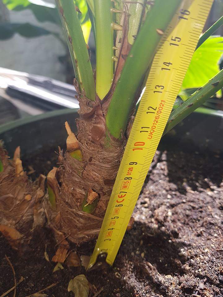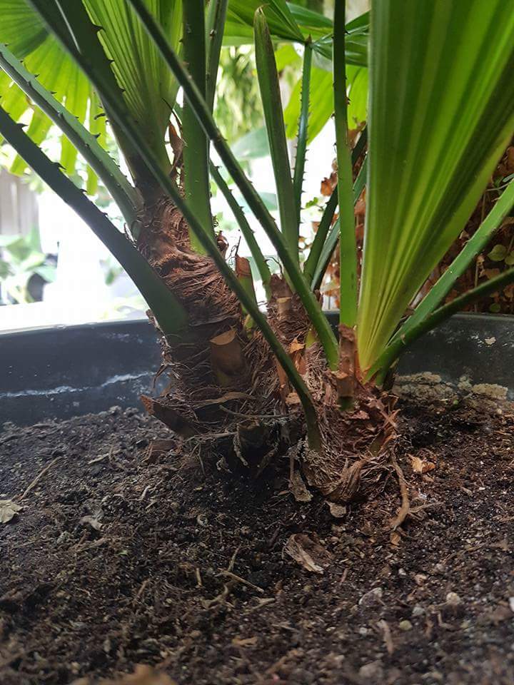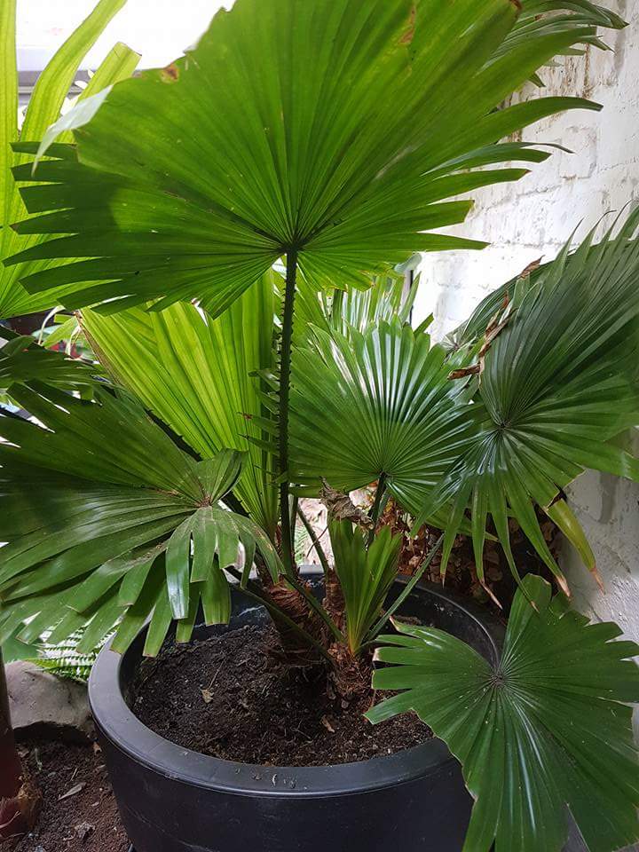 Deze livistona rotundifolia had ik 4 jaar geleden gekocht samen met mijn Dwarf Cevendish en zijn Bananen.