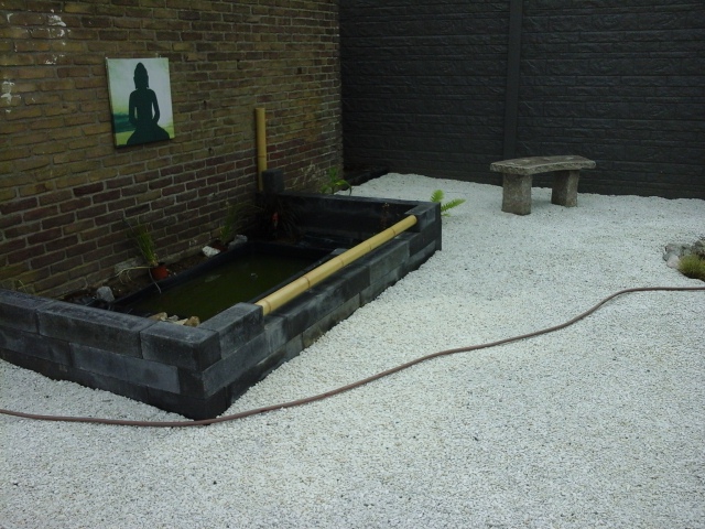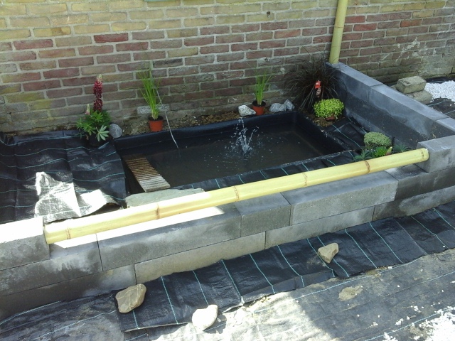 Inmiddels is de nieuwe schildpaddenvijver uitgegraven en heb ik hierom een muurtje gemetseld