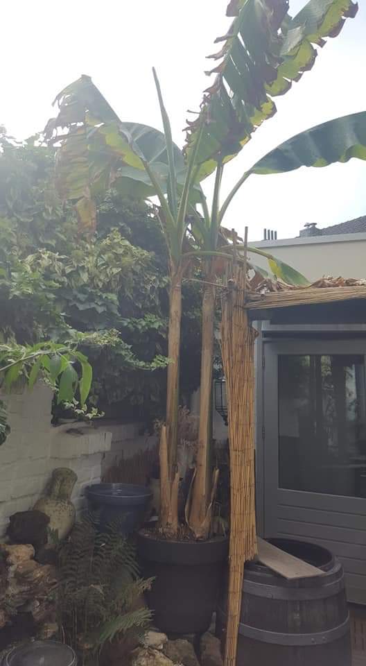 killuminati schreef:Netjes bonne!! Hier heb ik mijn musa sikkimensis red tiger ook ontdaan van minimale bescherming met een beetje vliesdoek. De stam is circa 3 meter hoog. Ziet er opzich goed uit, kern is nog groen. Ik heb zn broeryje wel binnnengezet en afgesneden op 2,50 m.