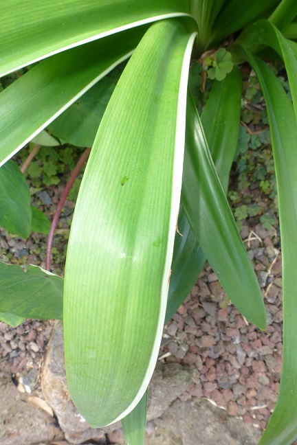 Mijn heeft verschillende scheuten maar niet de witte strepen op het blad of knop..