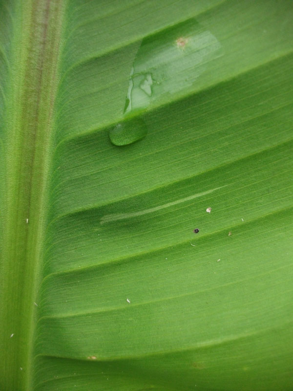 Soms staan de witte strepen op de bovenkant van het blad en soms vind je ze terug op de onderkant van het blad. Deze nieuwe Basjoo is natuurlijk niet te vergelijken als de echte Musa AeAe variateiten.