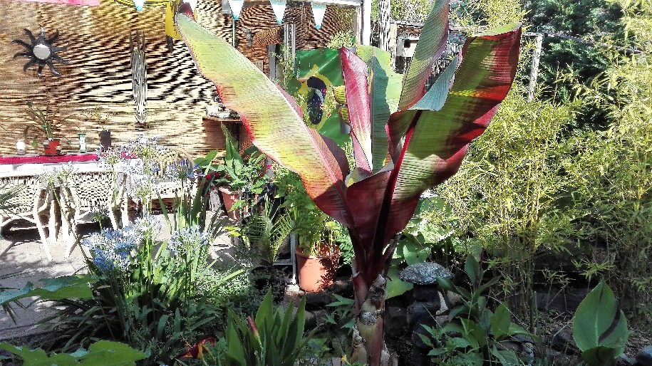 Bananen zijn nu pas op gang aan het komen en de agapanthus doet het dit jaar uitstekend.