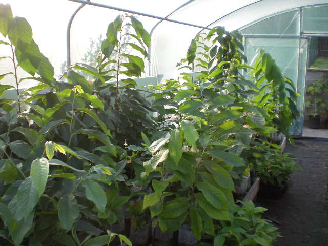 Zodra een bloem open gaat is de stamper vruchtbaar en lichtgevend groen. Het stuifmeel is pas een week later rijp en wordt dan lichtgrijs. Dit borstel je bij elkaar en met dit stuifmeel bevrucht je met een penseeltje de stampers van de ANDERE boom. Dit natuurlijk ook vice versa. Je doet dit ongeveer een maand dagelijks. Je zult dan omkomen onder de vruchten en kunt ook een maand oogsten van eind augustus tot eind september.