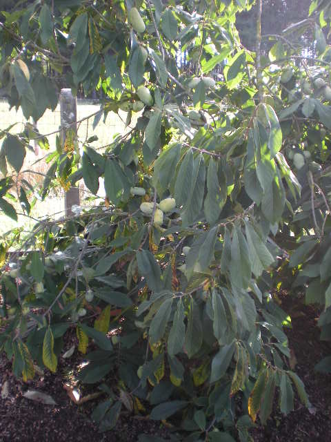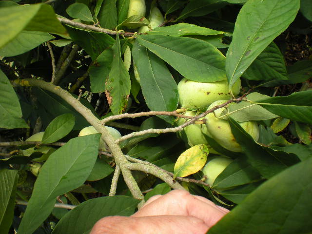 Hier zijn de pawpaws beginnen afvallen! ik pluk ze niet maar lat ze afvallen zodat ik ze gespreid kan opeten.