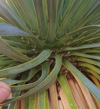 Deze Yucca lijkt me kerngezond. De harde bladeren zijn niet erg in trek bij ongedierte. Binnenhuis in de warmte kan een latente infectie manifest worden, i.e. wolluis of schildluis.