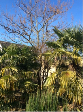 Nu wordt hij echt te groot. Takken hangen naar de buren.