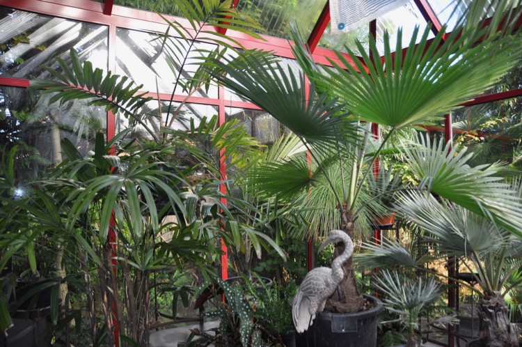 Ik prijs me gelukkig in het bezit van een plantenkas zodat niet meer 's winters de slaapkamers vol staan met kuipplanten. Een paar soorten overwinteren nog wel binnenshuis omdat die de min. kastemperatuur van ± 2°C niet overleefden ondanks hun vermeende tolerantie voor lage temperaturen. Het meerendeel van de kuipplanten verdraagt echter temperaturen tot om en nabij het vriespunt. Terwijl Chamaedorea elegans verrassend goed koude blijkt te verdragen, sneuvelden eerder Howea, Phoenix roebelenii en Ravenea glauca. Van de laatste is nu nog 1 exemplaar over en die staat weer tijdelijk in de woonkamer. Howea forsteriana en Dypsis decaryi die evenals Ravenea in de zomer in de tuin staan, overwinteren bij 10-15°C. Yucca, Cordyline en palmsoorten die matige vorst verdragen staan nog buiten, i.e. Butiagrus, Chamaerops en Trachycarpus sp.