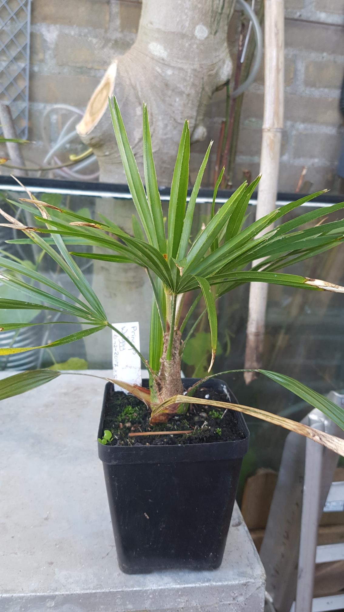 De grond is vermoedelijk niet zuur Jos, de bodem bestaat hier voornamelijk uit zeeklei vermengd met zand. Deze palm staat wel vrij schraal in een opgehoogd deel met rondom veel vegetatie (lees concurrentie). Een hybride T. fortunei x wagnerianus een paar meter verderop groeit aanzienlijk sneller. Maar zoals ik al zei deze vroege princeps kreeg 2 x een forse klap te verduren. De eerste maal ging de volledige kroon met speer verloren maar kwam aan de voet een ongedeeld blad tevoorschijn dat relatief snel door gedeeld blad werd opgevolgd. In 2012 ging door vorst opnieuw al het blad verloren maar bleef de speer intact. Sindsdien lijkt de groei wat te zijn versneld en is vooral het blad groter geworden.