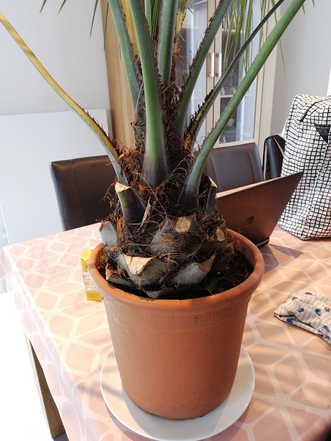 Net een Butia Capitata gecocht voor 29 euro in Famiflora (BE - Moeskroen). Waren ze net aan het uitzetten. Hopelijk was dit een goede prijs . Stamomtrek is 57 cm en hoogte is een 15 cm.