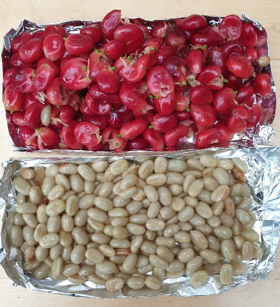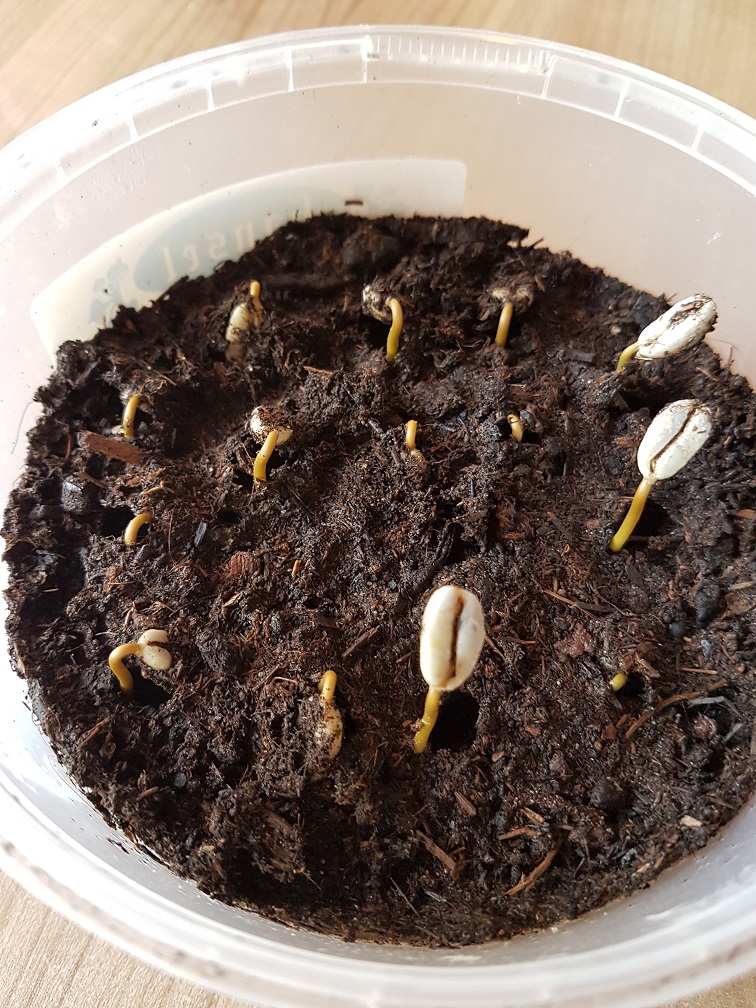 Ik heb dus nu/binnenkort weer coffea arabica zaden, Zuid-amerikaanse vrienden plukken ze om op te eten en gooien de zaden/koffiebonen dus gewoon weg