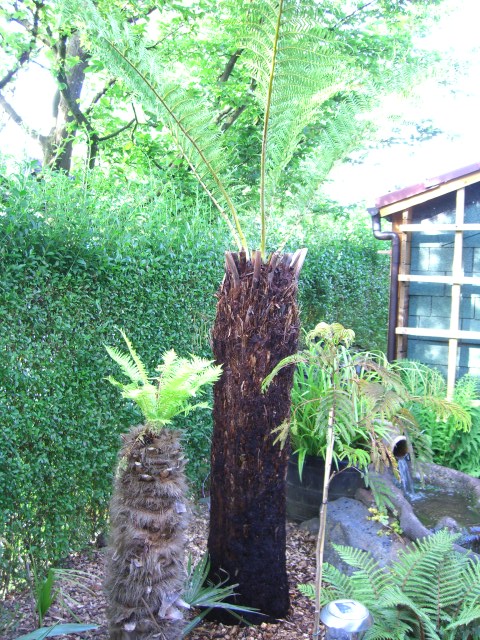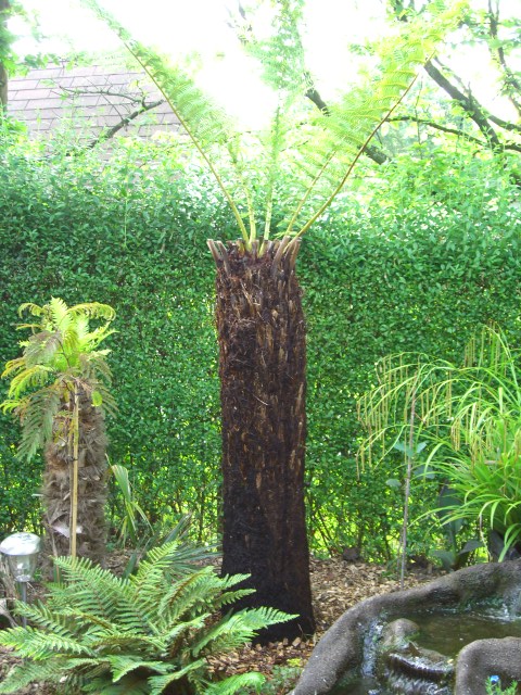 hoi nog enkele foto van de tuin met enkele nieuwe aanwinsten.een dicksonia stam 1.60 hoog onder 40 cm boven 30 cm.musa balbisiana en een albizia de gewone.en een kleine ensete ventricosum.mvg shorty