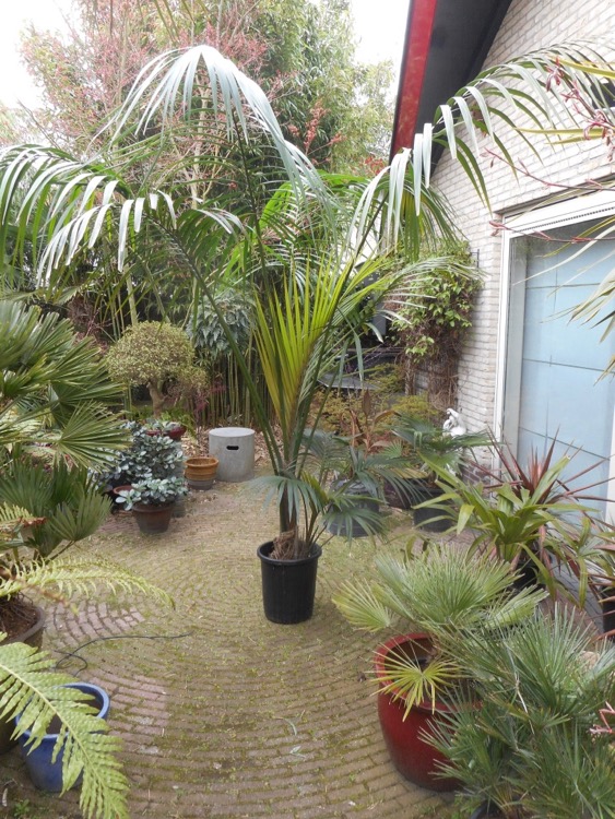 De overige palmen die binnen hebben overwinterd gaan binnenkort ook naar buiten zodra het nachtvorst risico is geweken, i.e. Dypsis decaryi en Ravenea glauca.