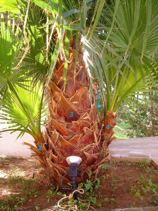 Voor de aanplant van de Washingtonia Robusta bij mij in volle grond koos ik daarom ook voor een multitrunk met drie stammetjes waarvan ik natuurlijk wel steeds hoop ze allemaal te kunnen behouden.