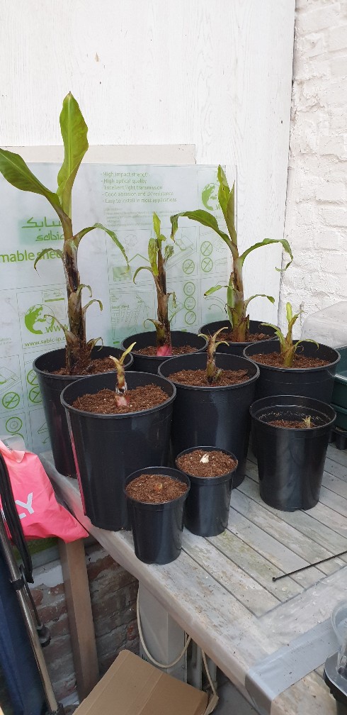 Aangezien de meeste bananen barerooted verstuurd worden de stoute schoenen aan en eigenlijk hem weer opgepot zoals een Maurelli uit zijn winterslaap komt, bijna barerooted en bladerloos gemaakt.
