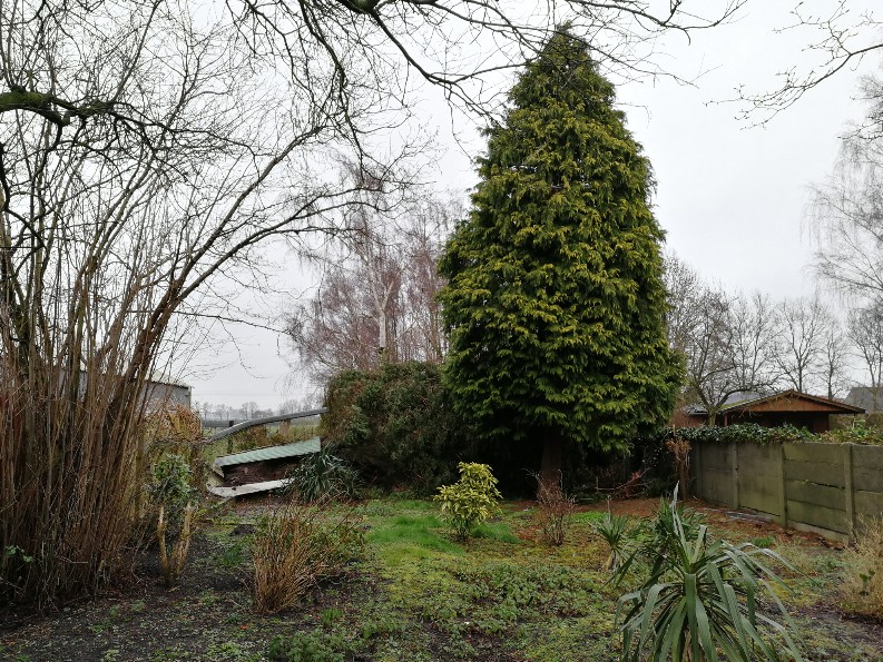 Zal waarschijnlijk volgend voorjaar zijn dat ik het helemaal vol ga zetten met het thema jungle. Schutting zal uiteindelijk niet meer zichtbaar zijn, ik vindt het wel mooi als planten een beetje moeten concurreren met elkaar. Op het voorste stuk van de tuin staat nog een oude varkensstal die nog plat gaat. Hieronder een foto van de vorig jaar. Bij aankoop moesten we eerst met een bosmaaier een weg naar achter banen om er te komen.
