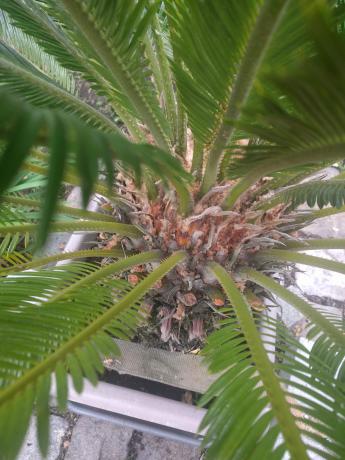 die angel is normaal, een cycas heeft op volwassen grootte stekels tussen de bladeren zitten.