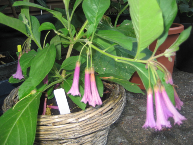Peter, die Iochroma australis (is dit nou met een i of met een l, verwarrend door het hoofdlettergebruik) is inderdaad prachtig. Ik heb begin juni ook een exemplaar aangeschaft, maar ben, na het zien van jou plant, niet zo zeker meer van de naam. Omdat mijn exemplaar veel paarser is. Ik zal de foto bijvoegen, heb jij een idee wat de goede naam van mijn plant zou moeten zijn?
