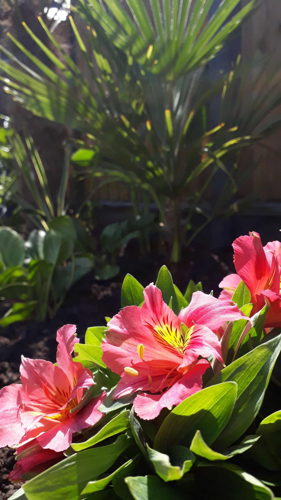 Welkom Sandra, dat ziet er lekker strak uit en inderdaad goed ingelezen qua plantenkeus, ik vermoed een breedte van 60/70cm van de border dat kan op een gegeven moment wat krap worden! De wortels kunnen gaan drukken bij de palmen, dit zal dat nog wel even duren dat zie je dan wel dan komen die elementen van hun plek ;)