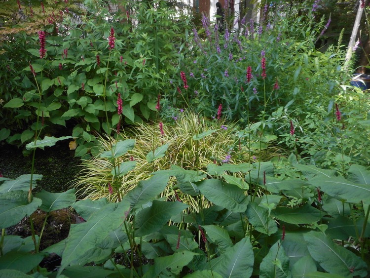 Word wsl combi van Moeraslobelia met Carex in de bak van bijna 70L, en een heel grote Gunnera manicata er net achter...(Thx Carlo!).