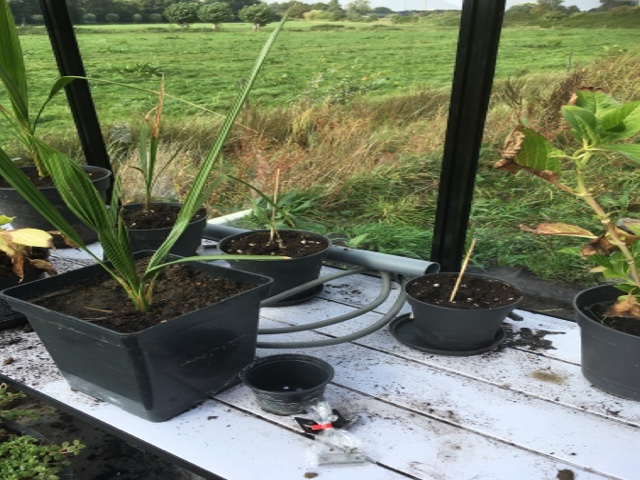 Zojuist een tuinkasje 2,3x3,7m geplaatst en hopelijk komende maand de 2 meeverhuisde palmen de vaste grond in.