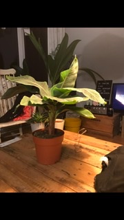 Vandaag een bananenplant gekocht. Mijn man is gek op bananen, vond de plant mooi en meer dacht ik er niet over. Tot ik er achter kwam dat deze ook daadwerkelijk vruchten kan geven, wanneer de omstandigheden en verzorging juist zijn. Nu hou ik heel erg van een nieuwe planten uitdaging en ging op internetonderzoek..Een Musa Tropicana, waarvan ik nu weet dat deze niet ‘echt’ bestaan. Dat ik moet spreken van een musa (super) dwarf cavendisch.