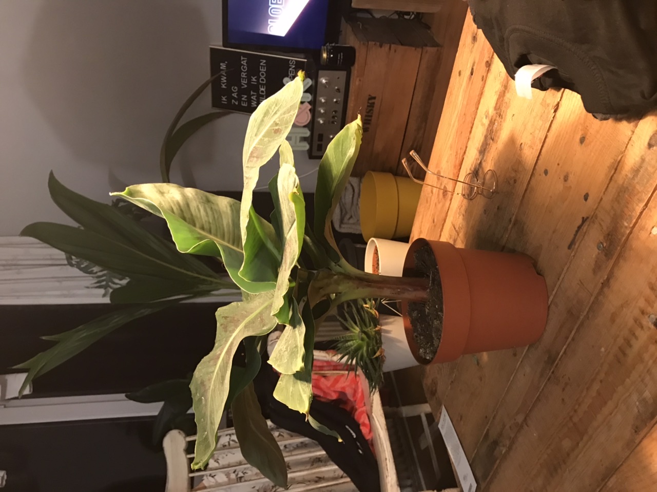 ben benieuwd hoe het gaat met de banaan. Ik heb hem inderdaad vanmorgen net verpot, zo even water geven en hopelijk gaat hij het goed doen. Door mijn monstera en palm al een vernevelaar in de buurt.
