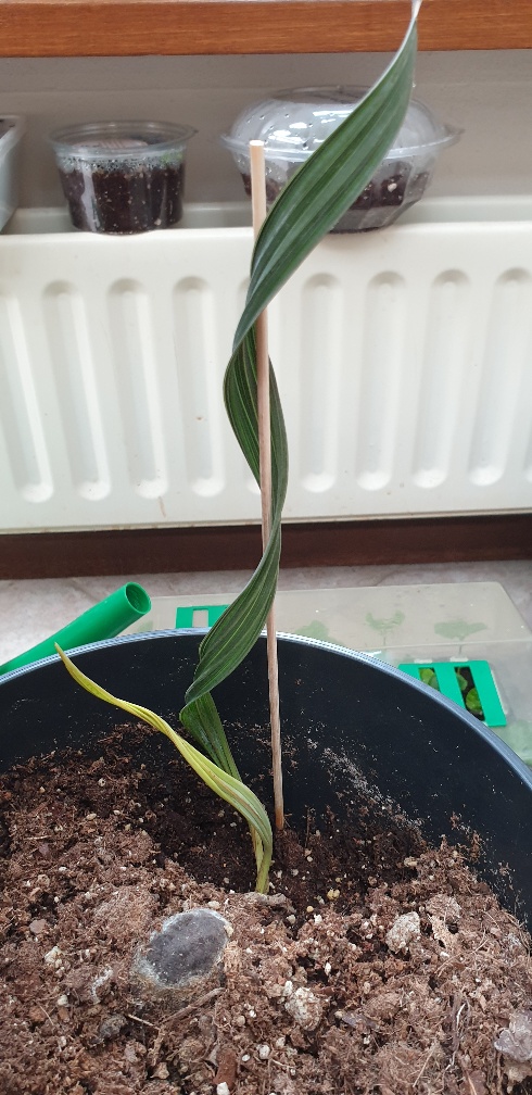 Mooi dat je een tweede blad gevonden hebt en dat het nu bovengronds zit. De komende dagen weinig zon en kan het mooi wat bladgroen gaan maken