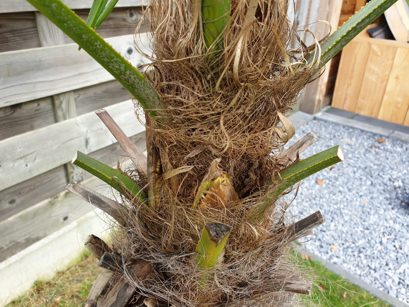 Hier nu een goed jaar in het bezit van een palm. Deze eind 2018 in de volle grond gezet. Tot mijn verbazing zag ik daar dit weekend al 2 bloemknoppen aankomen.