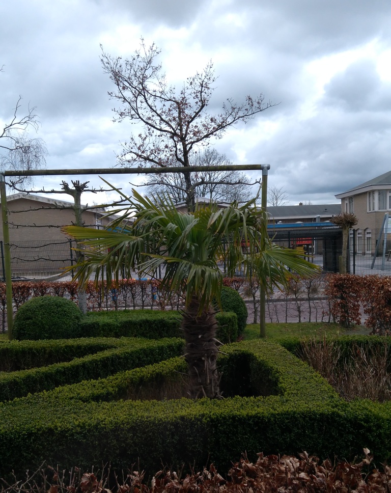 Persoonlijk zou ik terughoudend zijn met meststoffen. Als ik zo je buxus zie, is er niets mis met e voedingstoestand van je bodem. Zeker niet gezien een Trachycarpus die toch met weinig toe kan. Ik moet eerlijk zeggen dat het verplanten van grotere Trachycarpussen een laste bezigheid is. Ik bedoel dan vooral het herstel. Ze herstellen doorgaans maar heel langzaam. Ik vermoed dat dat vooral te maken heeft met dat om een dergelijk formaat hanteerbaar te maken, je veel wortelpunten moet verwijderen. EN de wortels van palmen herstellen toch minder makkelijk dan loofhout bijvoorbeeld. Ik verwacht dat het tekort aan voedingsstoffen vooral te maken heeft met dat je wortels dat nog niet goed op kunnen nemen. Dat hangt ook samen met hoe de wortelpunten samenleven met het bodemleven en hoe belangrijk die doorgaans zijn in het doorgeven van de belangrijkste voedingselementen. Ik zou zeggen, kijk het nog een jaar, wellicht twee jaar aan. Ik ben bang dat het toedienen van meststoffen eerder kwaad kan dan goed. Eerst moet je wortelgestel weer in optima forma zijn. En dit kost tijd.