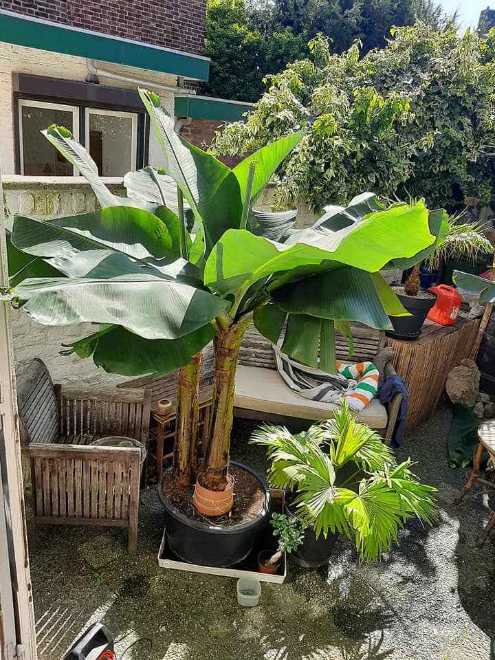 Guidonno schreef:Het lijkt erop dat de banaan aan het dichtslibben is. Te veel nieuwe bladeren zonder de de oude volledig hebben kunnen uitgroeien. Hij groeit nog wel.
