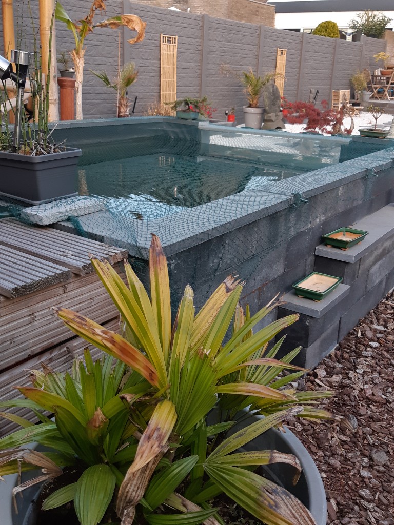 als je de varens mooi vol wilt krijgen zul je rondom de varens wat grotere gaten in het onderliggende worteldoek moeten maken om daar ook de grond toch zeker 40cm rondom de planten goed nat dient te houden [ voor verdamping -luchtvochtigheid] de witte steentjes kaatsen terug en maakt het warm en droog voor de varens!