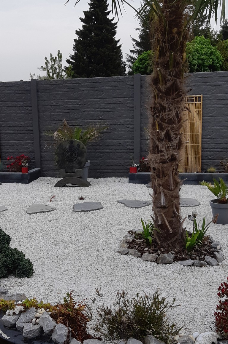 als je de varens mooi vol wilt krijgen zul je rondom de varens wat grotere gaten in het onderliggende worteldoek moeten maken om daar ook de grond toch zeker 40cm rondom de planten goed nat dient te houden [ voor verdamping -luchtvochtigheid] de witte steentjes kaatsen terug en maakt het warm en droog voor de varens!