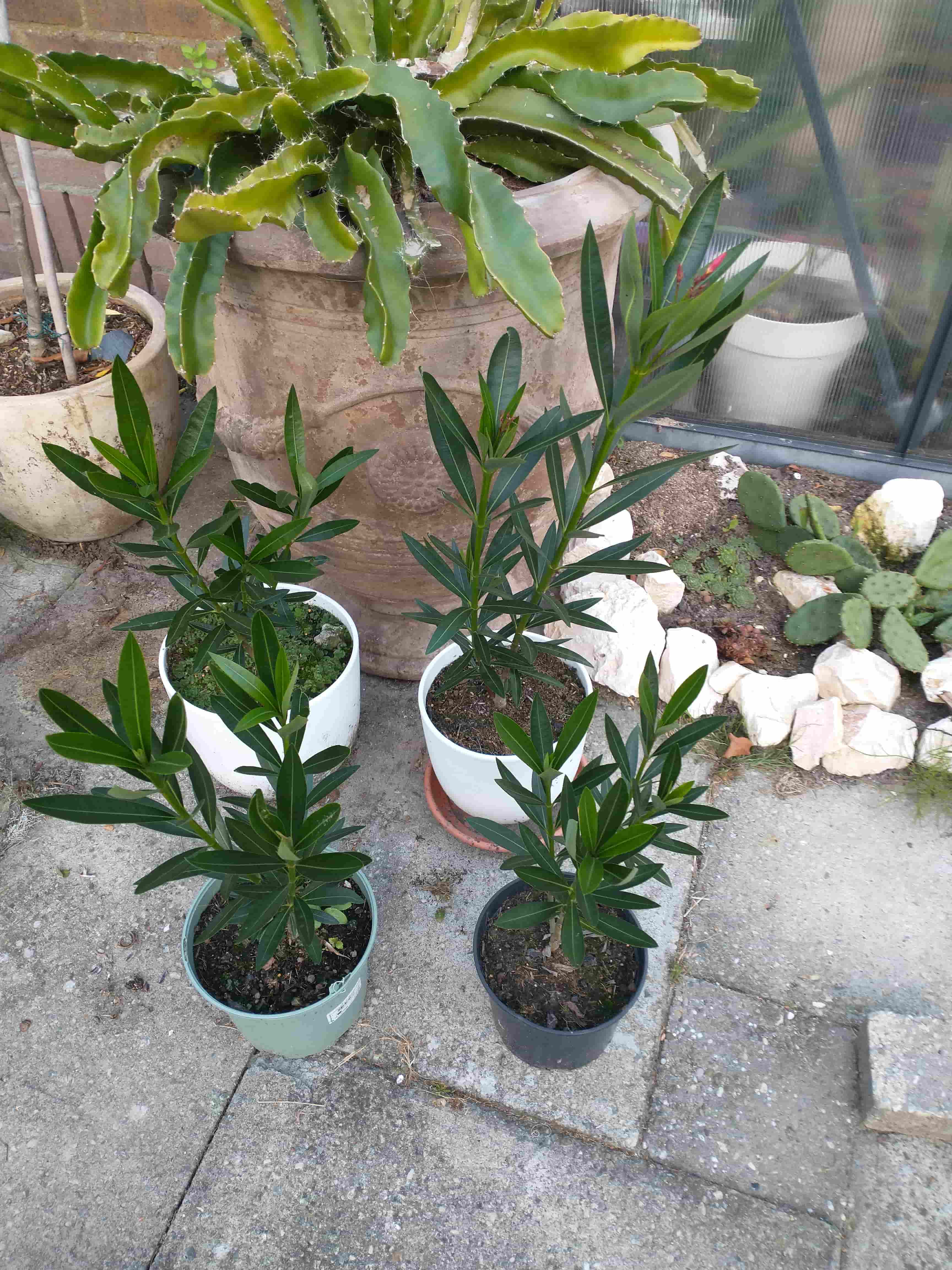 Ik ben blij dat ik deze stekken heb staan, want er zijn een paar (tuincentra) Oleanders overleden deze winter en alle stekken hebben in de koude kas overleefd 3 staan al in de volle grond, de laatste komt nog op een andere plek.