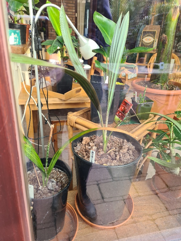 Ik heb 5 Bismarckia die opkomen en ze gaan eerst diep in de grond waardoor het lang lijkt of ze afgestorven zijn, maar na enige tijd wortelen zonder daglicht breekt de wortel open en komt er een eerste speer uit.