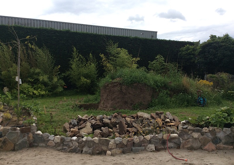 Stapstenen met daarachter het hyelofytenfilter had ik ook bedacht, maar niet dat die stapstenen op betonnen voeten gezet moest worden. Hoe maak je die? Betonblokken stapelen op een ondergrond van beton?