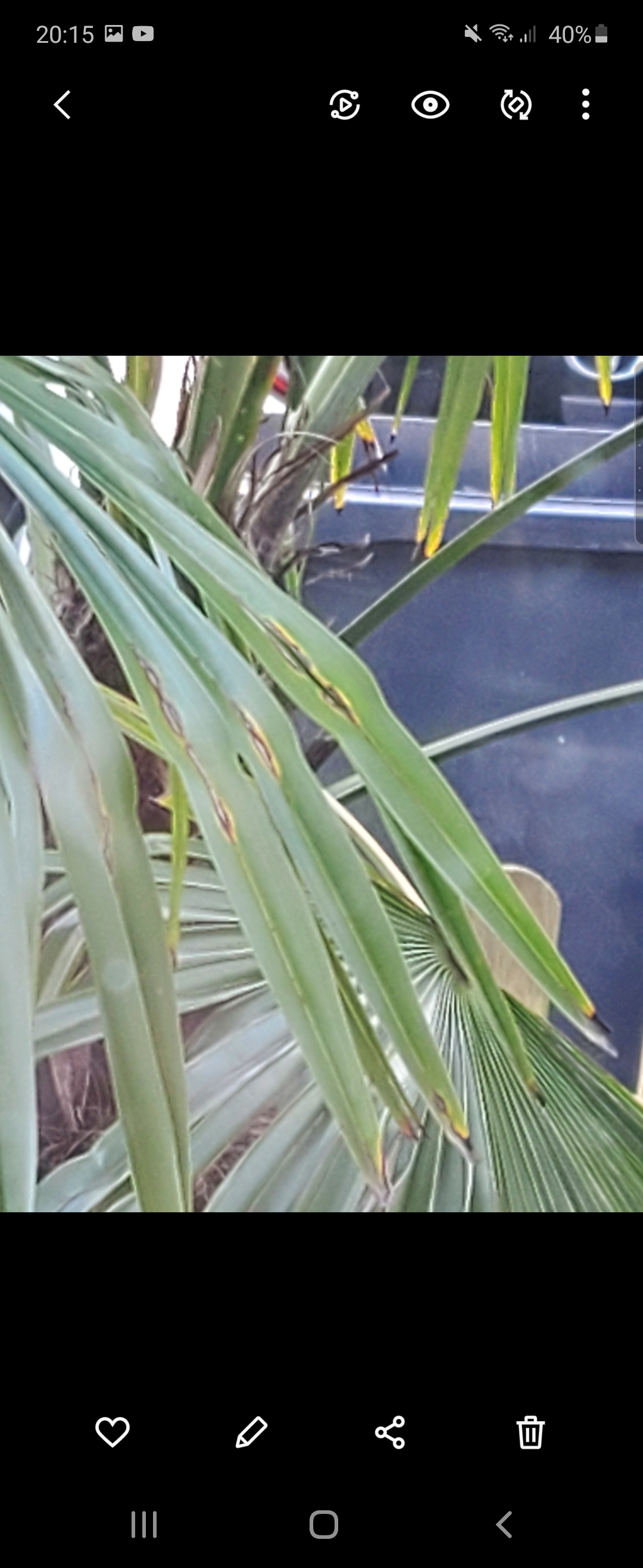 Ook zijn er zwarte vlekken op de bladeren en de punten van de palmbladeren worden ook zwart.
