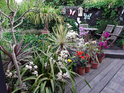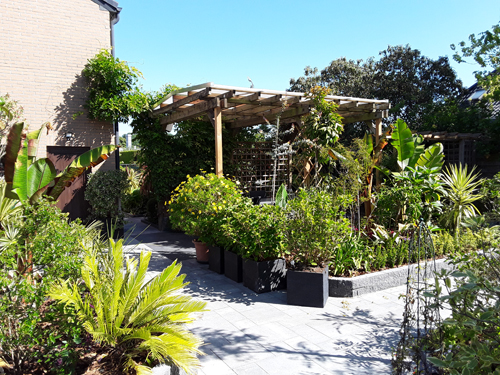 Mooi hoor! Vooral ie pergola en bloembakken! Uiteraard de beplating erin ook! Ik wist trouwens niet dat die Salvia Hot Lips maar -8 kon hebben... Hij staat bij mij sinds 3 jaar onbeschermd in de voortuin (dwz in flinke wind tussen veel weilanden). Dat is tot nu toe enorm goed gegaan... maar de winters waren ook zacht..