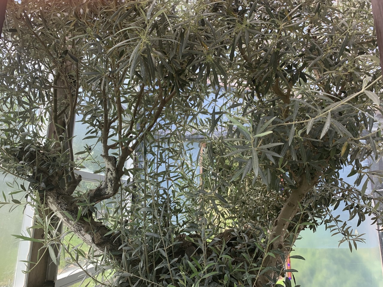 Ik vind het heel erg langgegerekte groei voor een olijf. Heb je niet een beetje teveel bemest waardoor deze lange, slappe scheuten maakt?