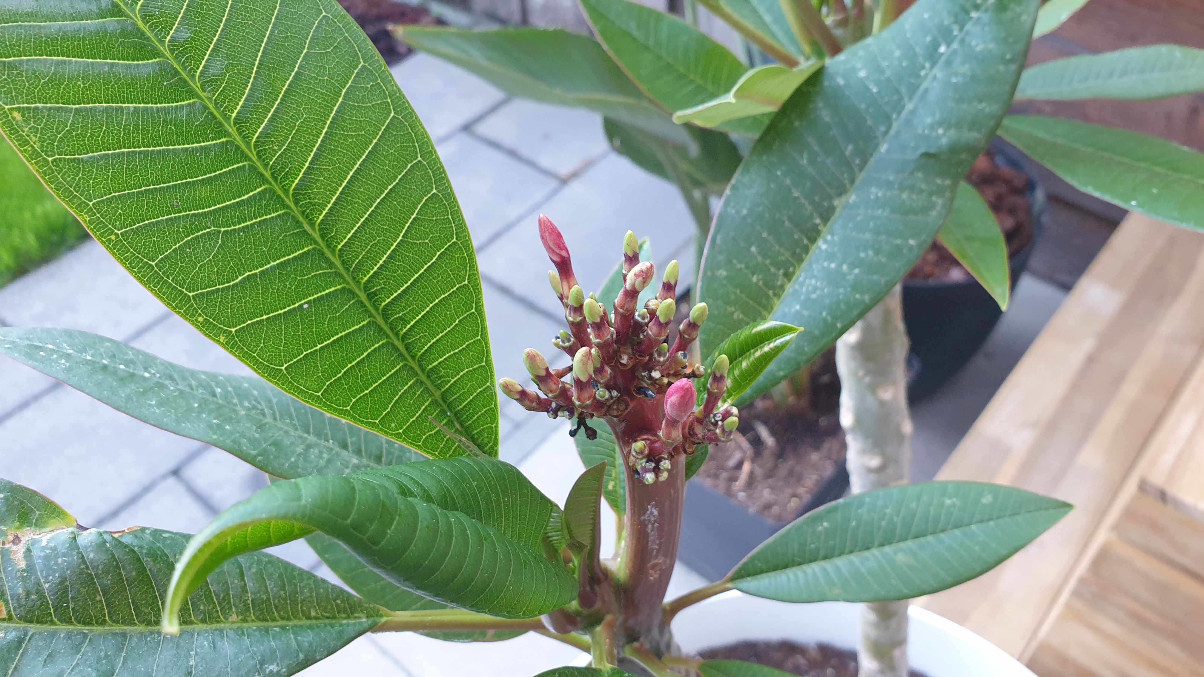 Ik heb een mooie plumeria in een grote pot staan welke lekker groeit en bloeit :thumb_up:
