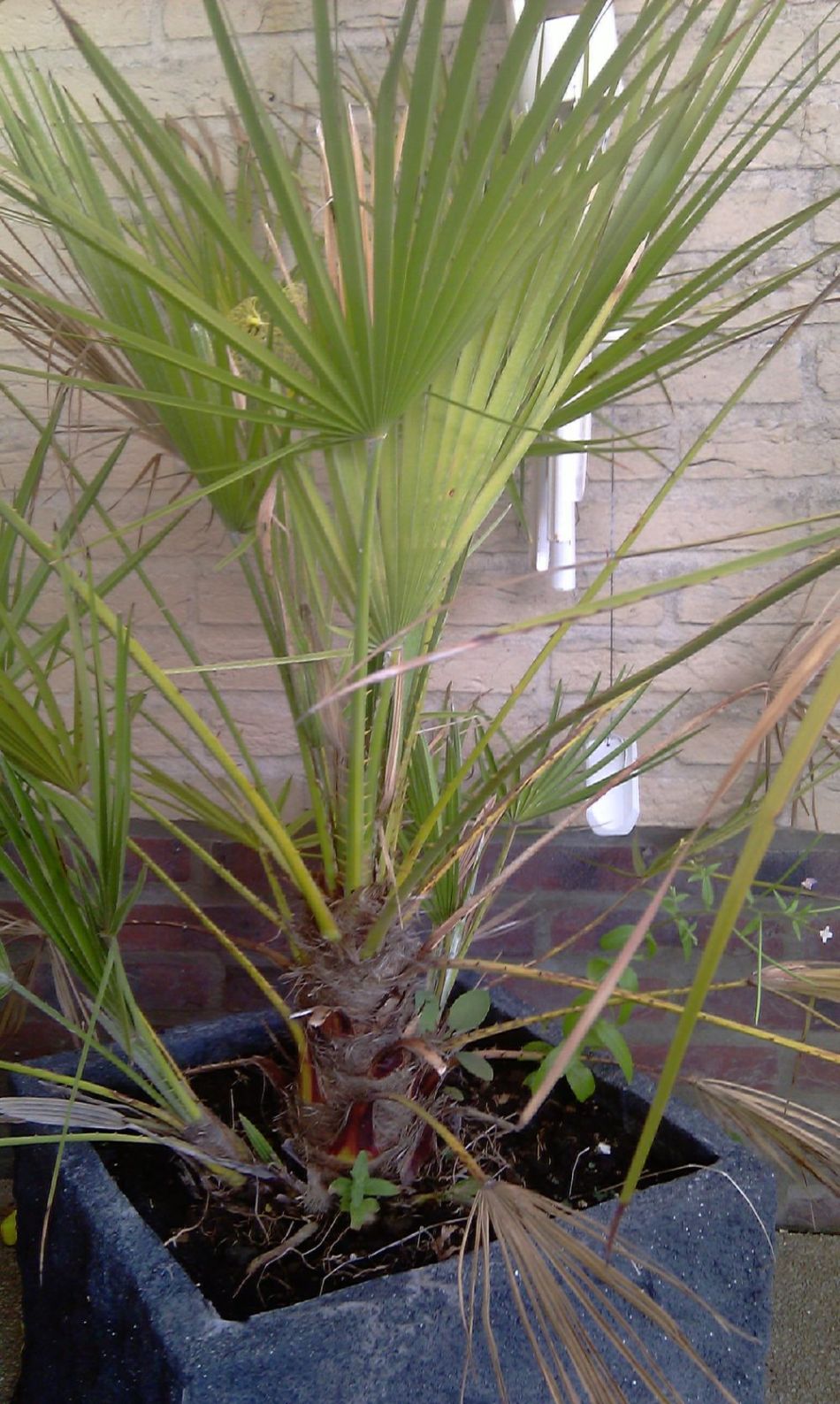 Aangezien de Chamaerops nog wat kleiner is kun je ook wat dichterbij afknippen, anders vallen die lange stompjes zo op ;)