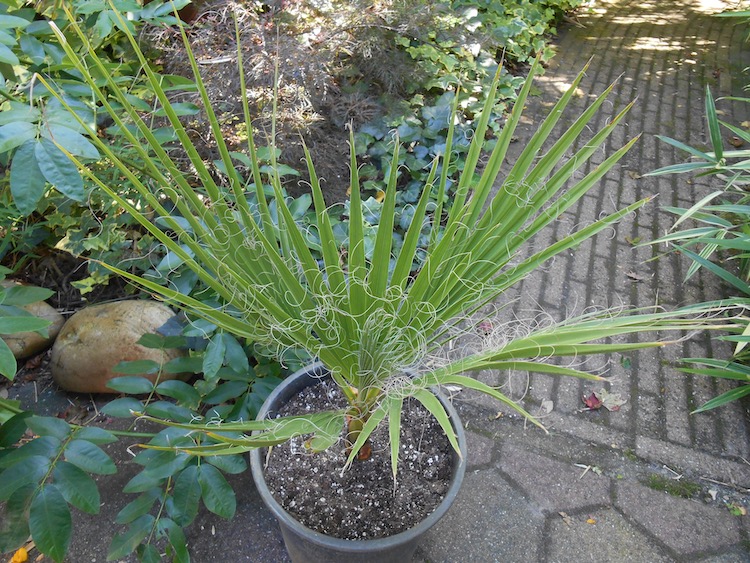 Op basis van deze beschrijving denk ik inderdaad de gezochte filifera te hebben. Ik heb geen vergelijkingsmateriaal (robusta) maar naast de ontbrekende stekels voldoet ook de vorm van de hastula aan de beschrijving van filifera evenals de minder uitgesproken verkleuring van de bladbasis.